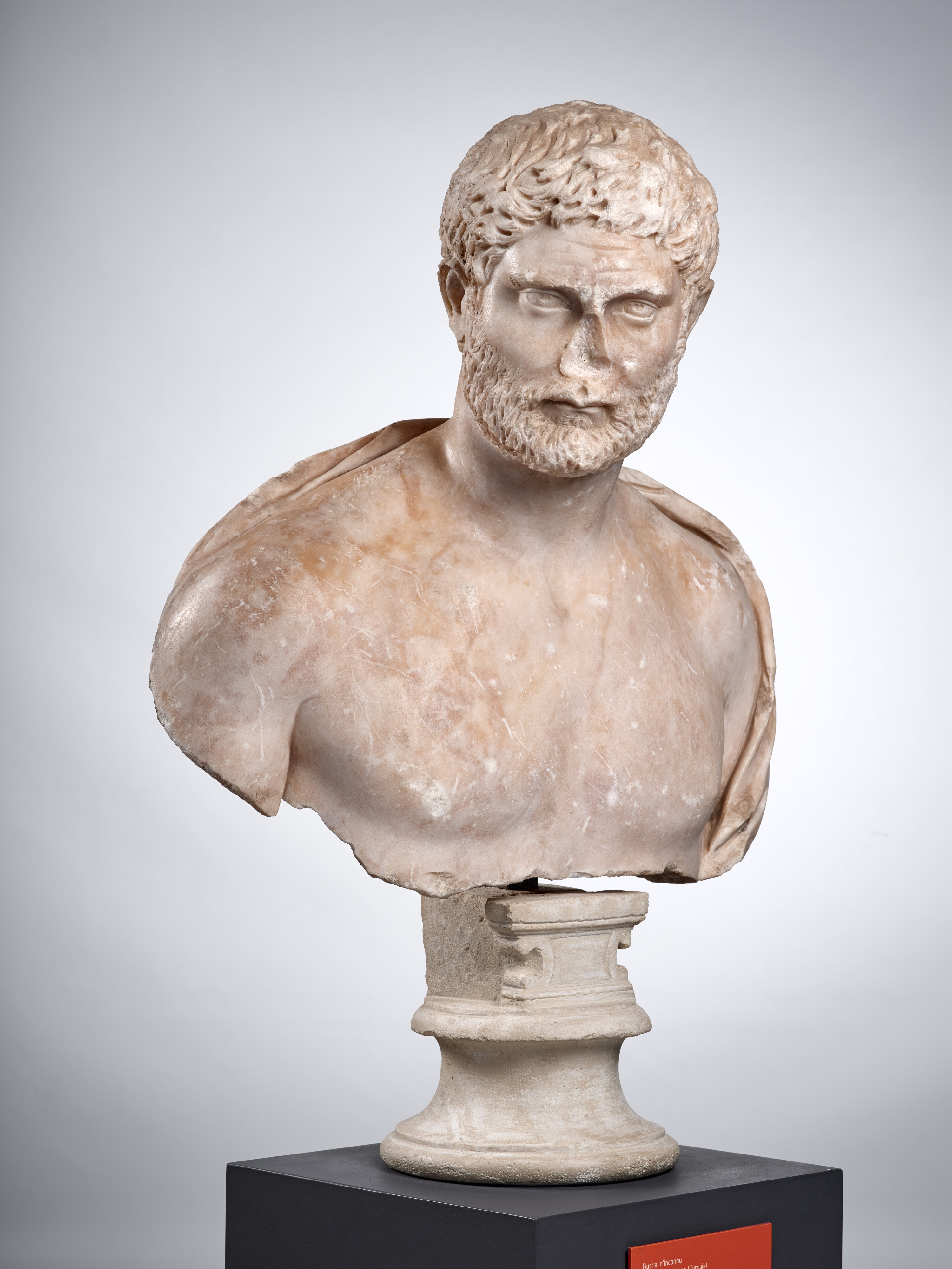 Capus P., "Buste d’un intellectuel (?)", dans Les sculptures de la villa romaine de Chiragan, Toulouse, 2019, en ligne <https://villachiragan.saintraymond.toulouse.fr/ark:/87276/a_ra_59>.