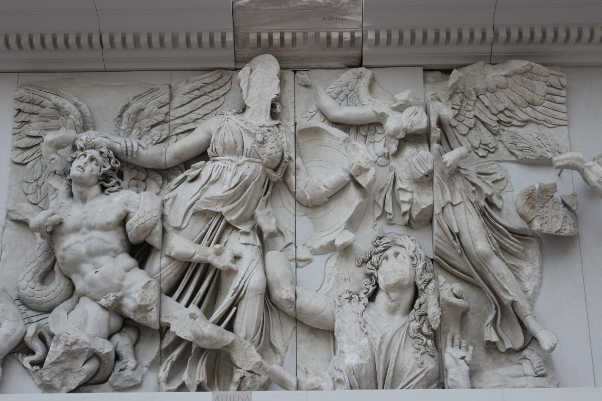 La composition confirme donc l’impression de familiarité et de redondances que nous pouvons ressentir face à ce cycle. Cet ensemble constitue, indéniablement, un authentique creuset d’images séculaires, retranscrites, consciemment ou non, par des sculpteurs dont la culture demeure intimement liée à l’esthétique diffusée dans l’ensemble du monde grec durant les derniers siècles avant notre ère. Après plus de cinq siècles, ces schémas et ces « manières » d’ateliers ont certes eu le temps de passer par le filtre de la romanité et de sa propre identité mais on peut rester stupéfait devant une telle pérennisation des formes, encore durant l’Antiquité tardive, ici mise au service de l’ostentation du message politique. Encore une fois, si, stylistiquement, la morphologie rappelle les lointains modèles du sculpteur grec Lysippe ainsi que les dieux et géants du